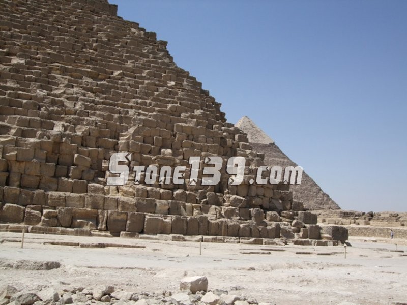 金字塔的塊石自己就能夠嚴絲合縫地排好,由此人們推測磨光工作是將塊石放好后進行的。采石場在尼羅河的附近,所以先用木筏來運輸這些巨大的石塊,之后通過石頭鋪成的高架路把這些石頭運抵金字塔。這些路也為以后的出殯隊伍服務。