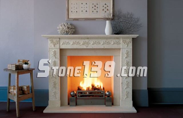 Chesney's壁爐,Bianco Avorio Limestone石灰石雕刻而成,此款壁爐由英國前首相丘吉爾的孫女簡.丘吉爾設計,天然石材的表面甚至可以看到石化貝殼,由此根據石材的特質創作了以《珊瑚》為主題的壁爐。
