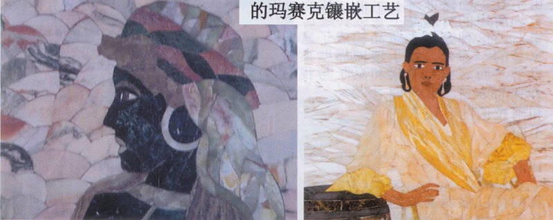 這一時期的鑲嵌工藝品用四方型的嵌面制成,有各色部件組成,還有玻璃,包括立體切割成的貴金屬。