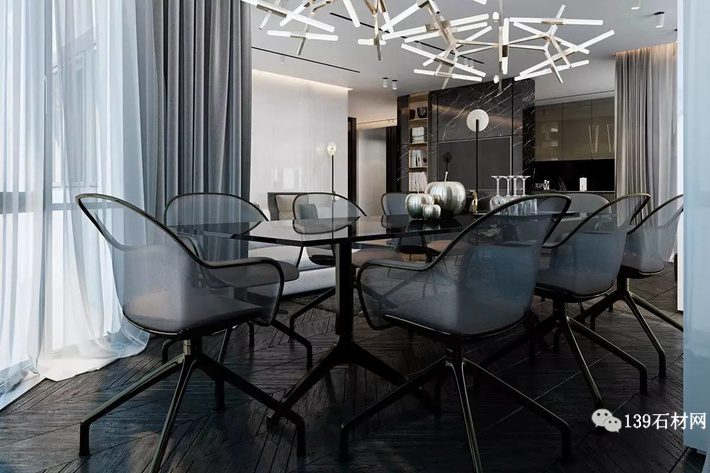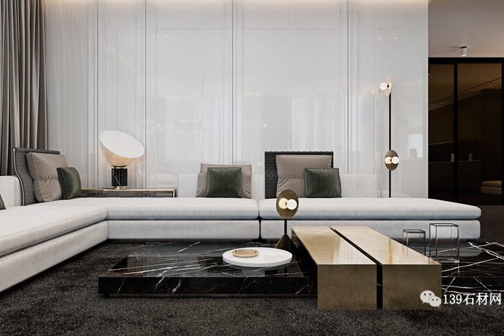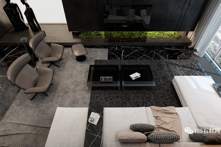 最后來看兩張實(shí)物案例,財(cái)富公館的黑白根裝飾效果