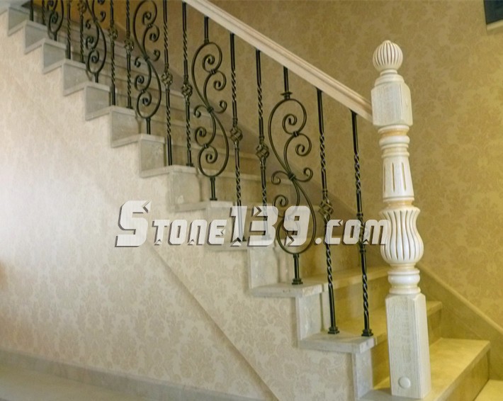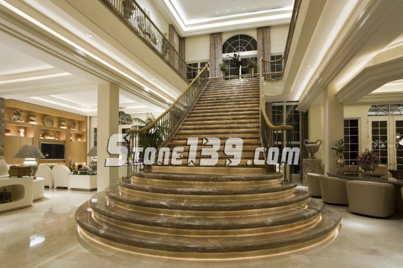 過去由于石材的機(jī)械切割工藝跟不上,是先安裝扶手,然后將磚體開一個豁口再貼上去,但是這樣做的結(jié)果就是,一眼看到樓梯上就發(fā)現(xiàn)有一個長方形的豁口,不美觀,但因?yàn)楣に囀芟抟仓荒苓@樣。