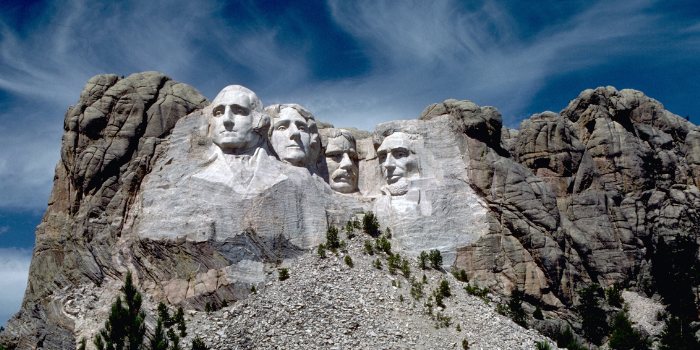 十、拉什莫爾山總統頭像在美國布萊克山區拉什莫爾山的花崗巖上,雕刻著高18米的巨大頭像群。他們分別是華盛頓、杰弗遜、羅斯福和林肯4位美國總統。該雕像工程于1927年開始,1939年落成。其施工全靠炸藥和鑿巖機完成。