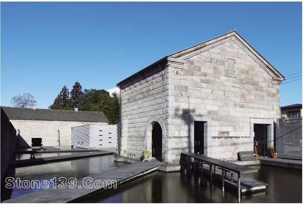1、日本青年建筑師隈巖吾(KengoKuma)在其一系列的作品中,不斷嘗試對于木材、紙、竹子、石材甚至塑料的創(chuàng)新運用,通過對這些并不多見的技術(shù)的不斷實驗和嘗試,建筑師成功地塑造了其在建筑材料使用上的國際聲譽,技術(shù)服務(wù)于藝術(shù)并且表達(dá)著藝術(shù)。在其石材美術(shù)館作品中,通過和白井石材這一石材業(yè)主的溝通,得知了石材可以比較輕松地加工成格柵,建筑最后采用組長1500 mm,截面是40 mm×150 mm的蘆野石做格柵,并通過間距1500mm的帶鋸齒形溝槽的石柱固定,形成了獨特的外墻肌理和遮陽效果.而且,該建筑還采用了厚度僅6 mm的透光大理石,產(chǎn)生了獨特的光影和空間效果。