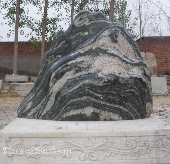 雪浪石的文化價值更是深邃。四大名石的名稱都是依傍產地的名稱而命名的,而真正以石質特征、內涵命名的觀賞石應首推雪浪石,早在公元1093年,139石材網蘇東坡任定州知州時,巡視曲陽得一奇石,但見黑質白脈,文如飛雪浪涌,酷似當時兩位蜀地畫家孫位、孫知微所畫的“石澗奔流,盡水之變”的雪浪圖,遂詩性大發,詠出“雪浪石”詩二首,其中“畫師爭摹雪浪勢,天工不見雷斧痕”等佳句成為后代賞石家們評判雪浪石高下的圭臬。蘇翁的書屋也自題為“雪浪齋”,又命曲陽的匠人用曲陽的漢白玉雕成丈八芙蓉盆,將雪浪石供于盆中,且勒銘于盆唇,銘曰:“盡水之變蜀兩孫,與不傳者歸九原。異哉駁石雪浪翻,石中乃有此理存。玉井芙蓉丈八盆,伏流飛空溯其根。東坡作銘豈多言,四月辛酉紹圣元。”