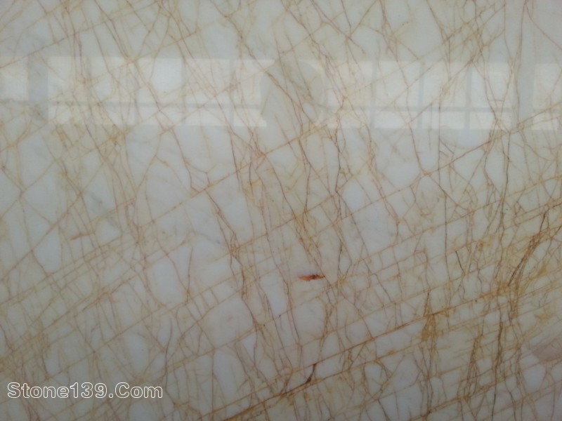品種介紹:金蜘蛛分三種風格,1、白底紅根;2、黃底紅根;3、黃底黃根。網紋經常變化,有密集網和稀疏網之分,50%料有灰紋存在,棕色色線及材質松散為其主要缺陷。此料出材率很低,膠補困難,易崩邊崩角。