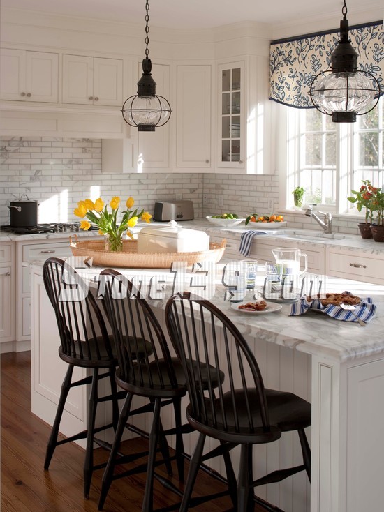 廚房裝飾 白色大理石臺面與實木臺面的配合