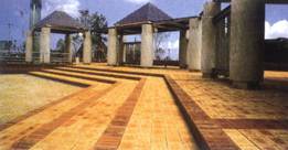 園路的色彩必須是沉著的。色彩的選擇應(yīng)能為大多數(shù)人所共同接受。它們應(yīng)穩(wěn)重而不沉悶,鮮明而不俗氣。路面夏季光線柔和,不反光刺眼。冬季又較普通混凝土路面感覺(jué)溫暖。鋪地的色彩如過(guò)于鮮艷、富麗,則喧賓奪主,甚至?xí)斐苫靵y的氣氛。色彩必須與環(huán)境統(tǒng)一,或?qū)庫(kù)o、清潔、安定,或熱烈、活潑、舒適,或粗糙、野趣、自然。