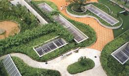 日本某住宅區(qū)停車場(chǎng)屋頂庭園的鋪裝,色彩淡雅,紋理和諧美觀