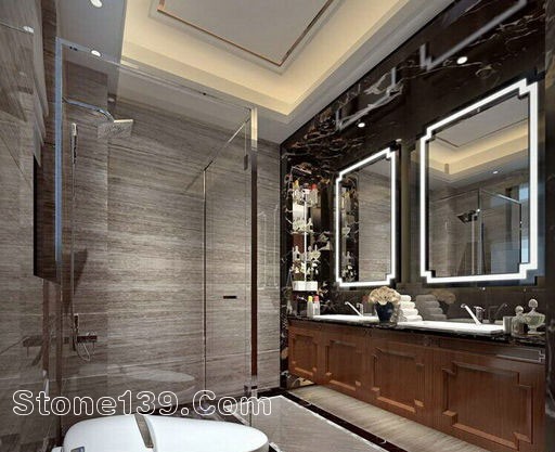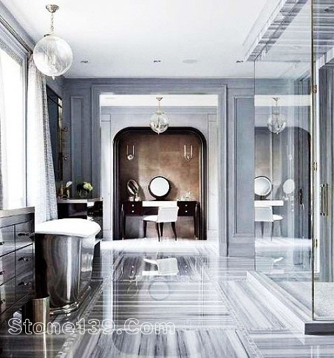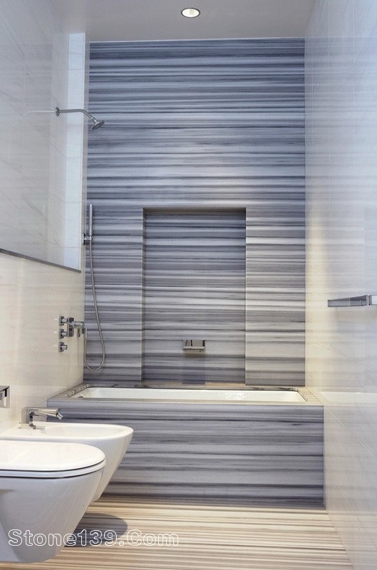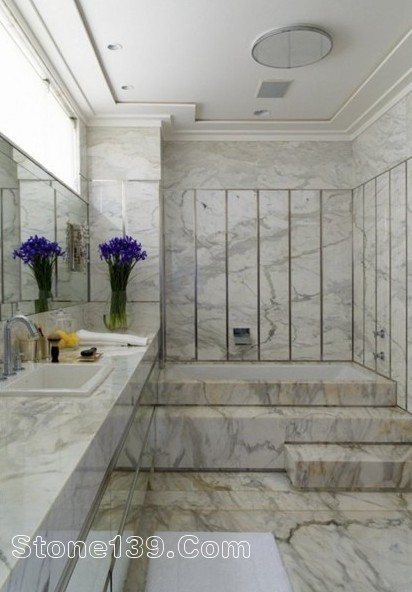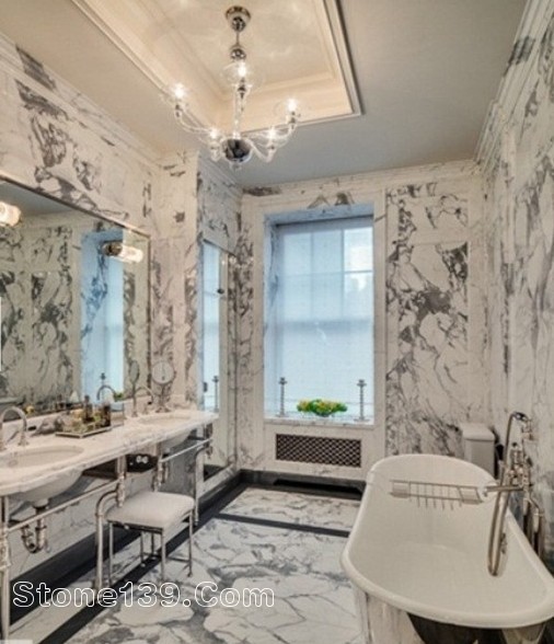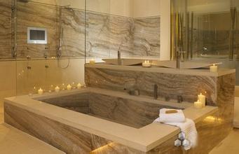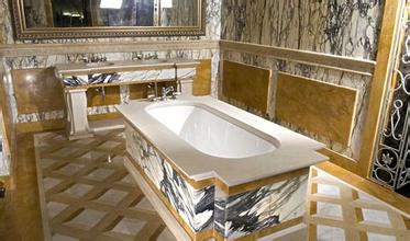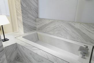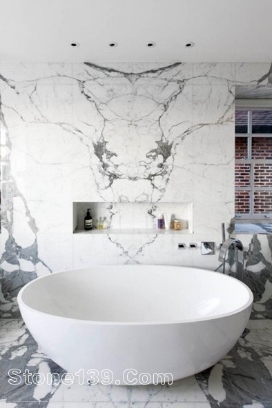 大理石浴室地板和背景墻 純白色橢圓浴缸