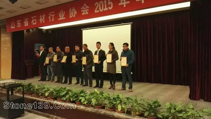 隨后,山東亞華銷售部孫經理介紹了山東亞華公司2016年關于石材企業的三項優惠政策,聶燕珍秘書長代表秘密處宣讀了協會2015年總結及2016年工作計劃,網絡中心張明鏡主任就協會八大服務平臺對各會員進行了詳細介紹,網絡中心陳朝來宣讀了關于表彰山東省石材行業2015年度優秀企業的決定,其中,海宸國際會展榮獲“優秀企業獎”。