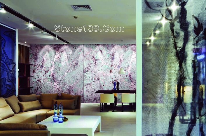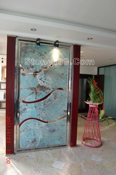海冰藍石材的裝飾應用 屏風和背景墻。。。。