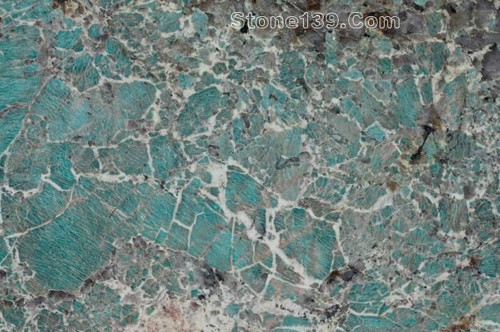 海冰藍其實是“天河石”, 顏色介于藍色與綠色之間,中間帶有白色紋理,質地明亮,透明度好,表面有絲質玻璃光澤。結構與翡翠非常相似,獨特的雙晶結構,優質品的“天河石”甚至可以做為翡翠的代用品。