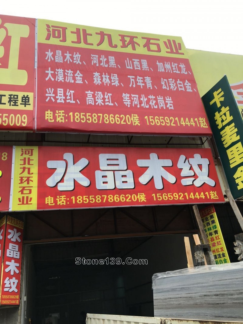 河北九環(huán)石材有限公司始建于2002年,工廠占地面積5000平方米,位于河北省靈壽縣,距天津港320公里,交通運(yùn)輸非常便利。公司主要生產(chǎn)加工本地及周邊的花崗石,大理石品種。主要的產(chǎn)品有水晶木紋,藍(lán)金沙,幻彩白金,山西黑,河北黑,蝴蝶綠,蝴蝶蘭等。生產(chǎn)類別有工程板,毛光板,大板,異型等。