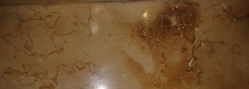 2.1.5 在地面石材進(jìn)行研磨時(shí),對破壞防護(hù)劑或涂刷防護(hù)劑沒到位的地方,沒有進(jìn)行補(bǔ)刷防護(hù)劑而造成石材地面泛水斑(泛黃)如下圖。