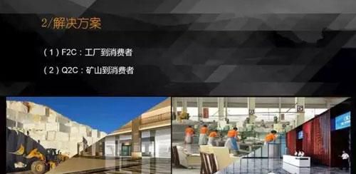所以我在這里提出一個觀點,商業模式里面有一個叫F2C,工廠到消費者,這是全世界都在流行的一個消費模式。但是,我覺得對于我們石材人來說,可能我提的要求會高一點,我講Q2C,Quarry to Clients,礦山到消費者。