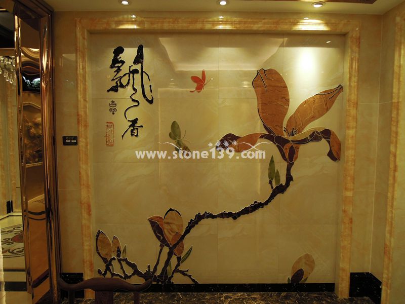 全石材拼接的背景墻