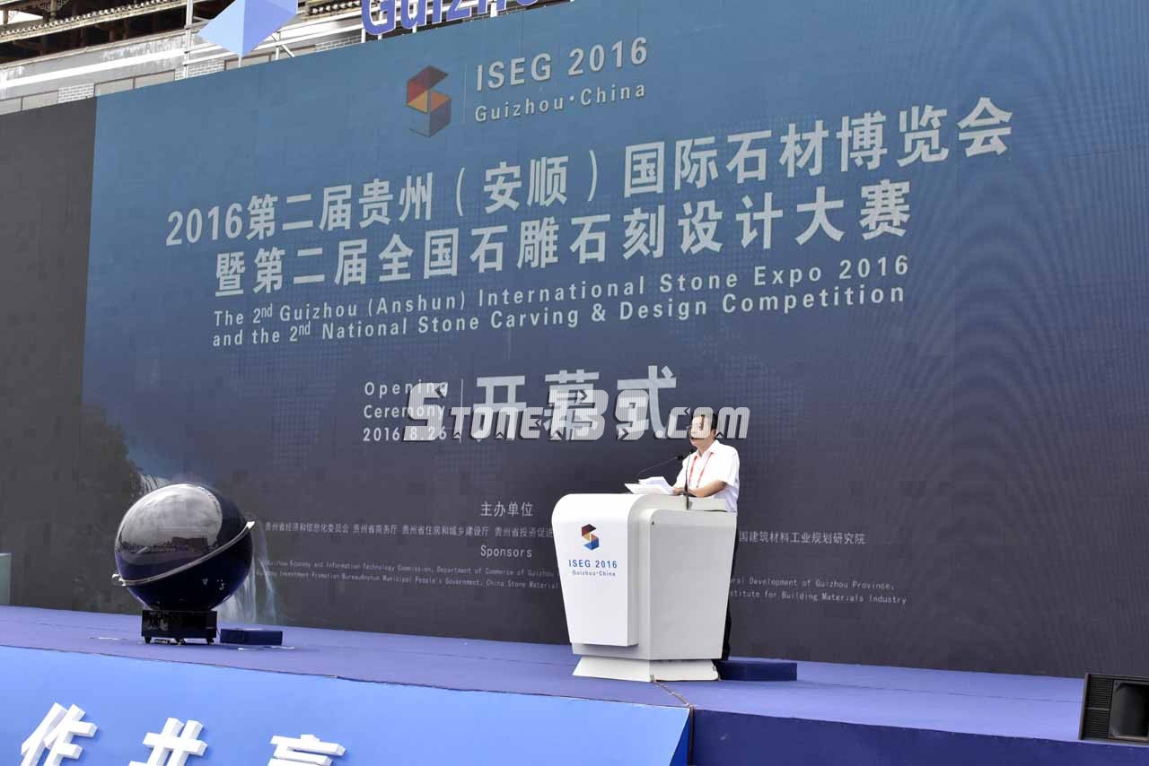 十一屆全國政協副主席陳宗興出席開幕式并宣布開幕。貴州省委常委、副省長慕德貴講話。全國工商聯原副主席、中國西部研究與發展促進會理事長程路,貴州省政協副主席班程農,國務院參事、國土資源部原總工程師張洪濤,中國科學院院士劉嘉麒,廣東省人大常委會原副主任王寧生,云南省政協原副主席陳勛儒,中國建筑材料聯合會副會長、中國建筑材料工業規劃研究院院長徐永模等出席了開幕式。安順市委書記周建琨致歡迎辭。工業和信息化部原材料工業司司長周長益,中國建筑材料聯合會副會長、中國石材協會會長陳國慶講話。省經濟和信息化委員會主任馬寧宇主持開幕式。