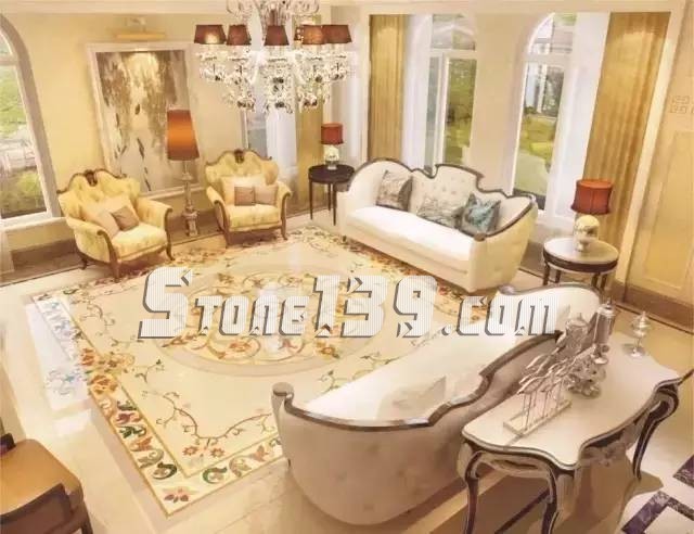 喜歡雅致風格的戶主可以在客廳中央鋪貼一些花樣簡單的拼花產品,省去了毛毯的打理,也讓空間更有生活情趣。