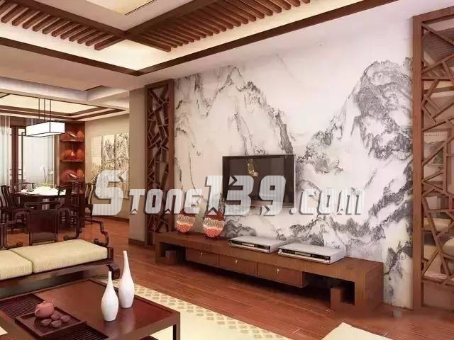 作為客廳的主視覺焦點,背景墻往往是一個裝飾亮點,天然石材花紋自然,能很好地表現創作意圖,適合在墻面上做藝術造型。