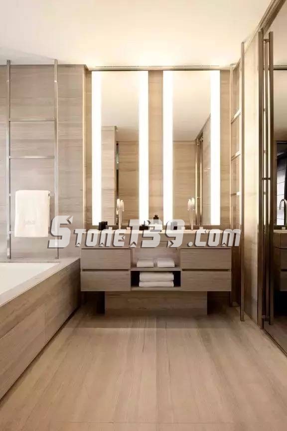 如果地面和墻面都采用石材鋪設,可以選用同一種石材,這樣能夠給人一種整體感,美的純粹。那樣,盥洗時心情一定是愉悅的。