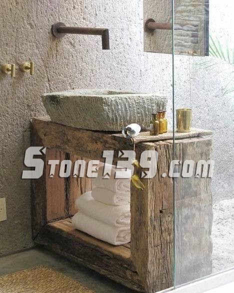 石材的材質和原木營造出古樸風格