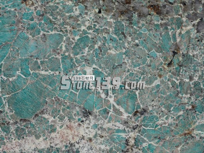 海冰藍 英文名Amazonita,海冰藍其實是“天河石”, 顏色介于藍色與綠色之間,中間帶有白色紋理,質地明亮,透明度好,表面有絲質玻璃光澤。結構與翡翠非常相似,獨特的雙晶結構,優質品的“天河石”甚至可以做為翡翠的代用品。