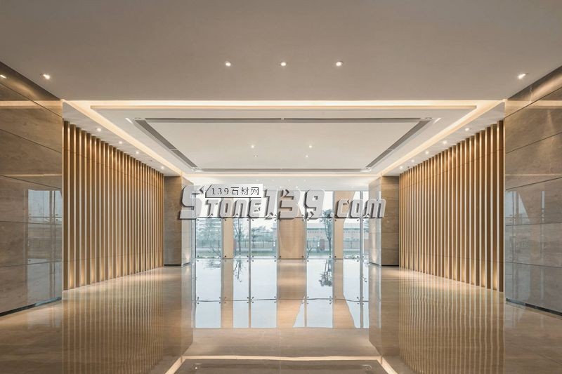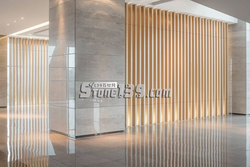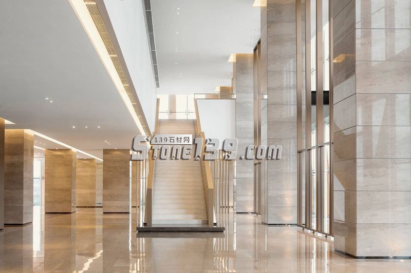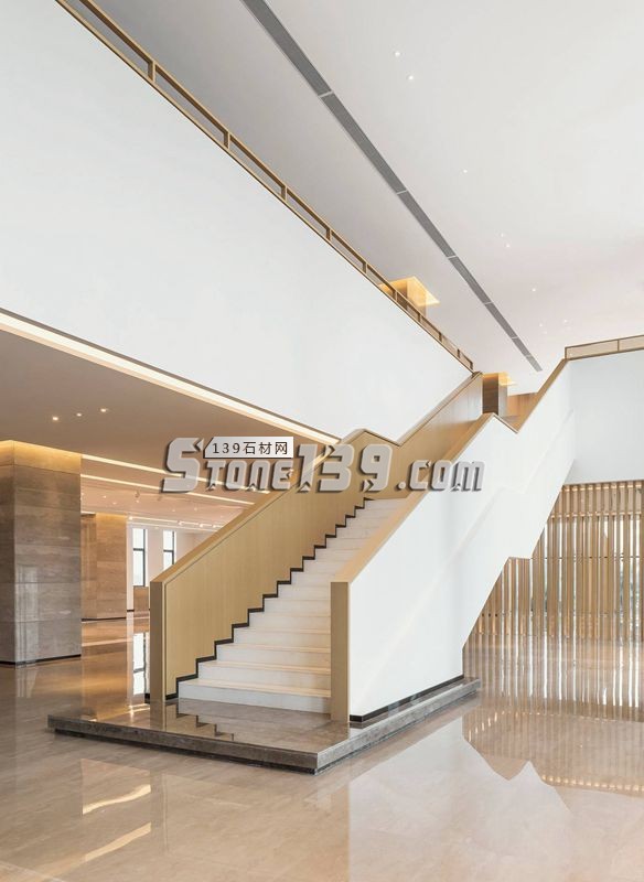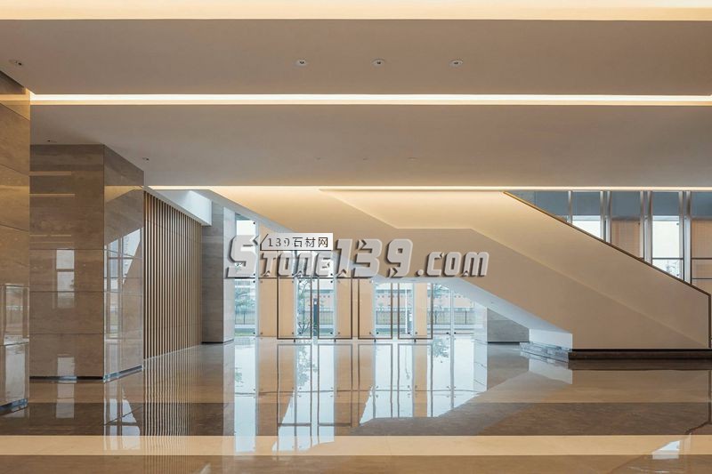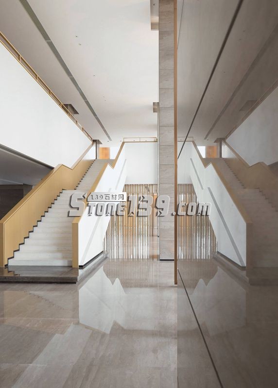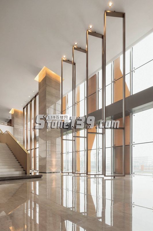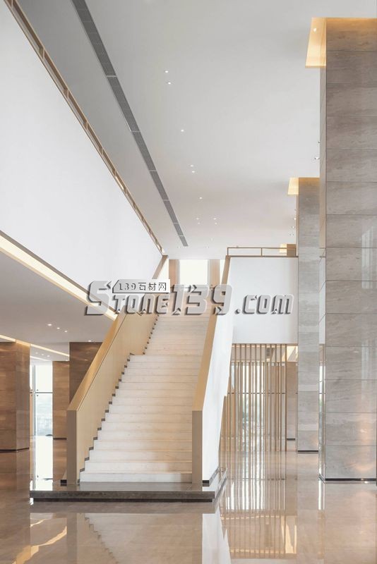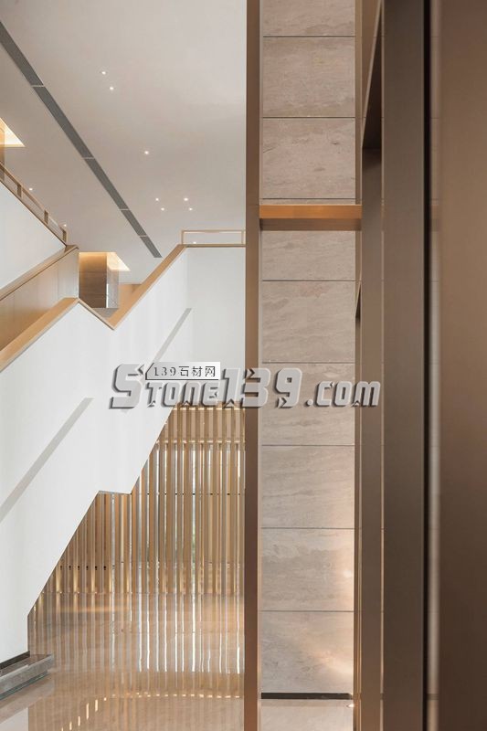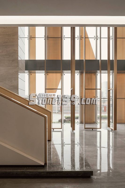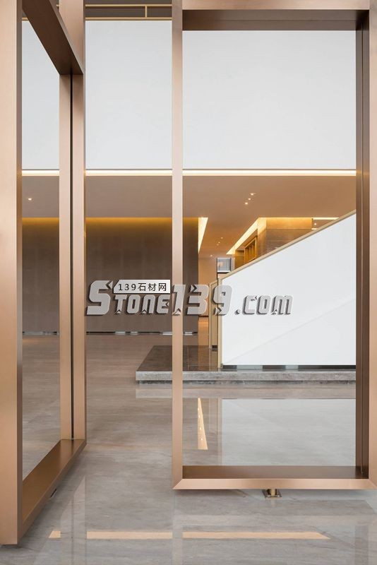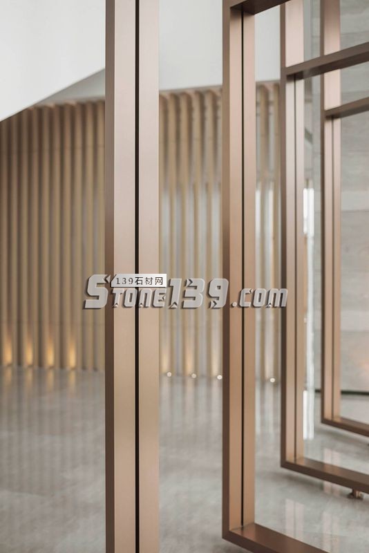 兩層挑空的大堂空間,有與生俱來的大氣莊重,棱角分明的線條感,表達著高貴的樸素,簡潔的同時亦注重細節,由此顯出質感的堅實與細膩。