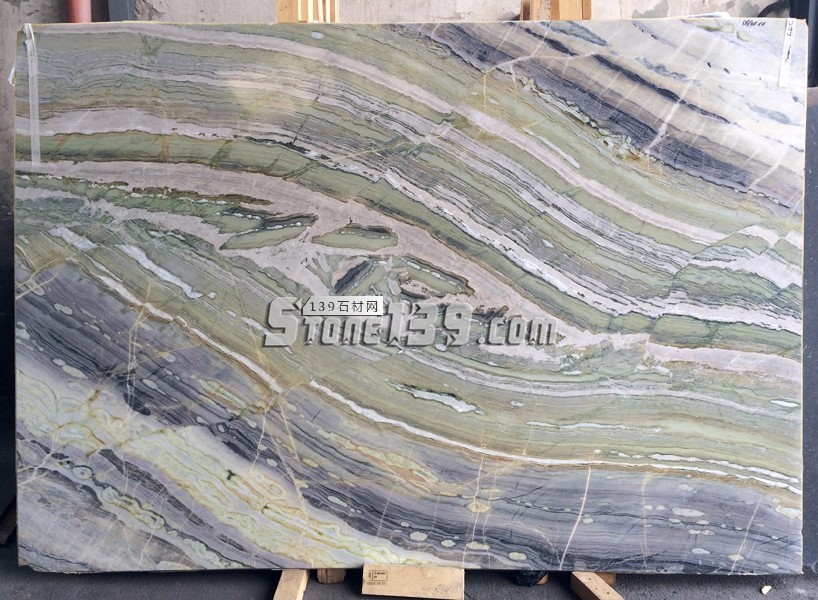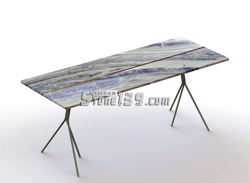 francesco meda創(chuàng)作的“split marble”(“分裂大理石”)桌由意大利阿爾卑斯山(Apuan Alps)兩種不同的大理石板構(gòu)成。該家具作品使用磨光的銅條框架將兩個(gè)分開的部分相連接。連接部分使用的是一塊羅馬藍(lán)大理石(blue roma marble)和河玉大理巖(river jade)。18毫米厚的石板下半部分以樹脂包裹 - 以確保較為明顯地突出大理石紋理。桌子表面呈現(xiàn)出材料所含的復(fù)雜層面,揭示了原碳酸鹽礦物顆粒發(fā)生再結(jié)晶引起的變質(zhì)過程。