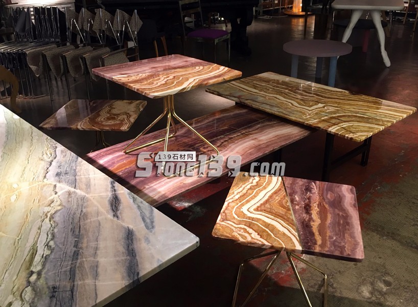 2016米蘭設(shè)計(jì)周期間,“split table”連帶一組咖啡桌一起在rossana orlandi畫廊展出。咖啡桌特意制作成50×50 cm的模塊化結(jié)構(gòu)以形成若干組合作品。其中桌面以紫縞瑪瑙和黑海玉石搭配黃銅邊條制成。桌腿構(gòu)造有意偏向輕質(zhì)理性的審美結(jié)構(gòu),以對(duì)設(shè)計(jì)的主要材料大理石板形成強(qiáng)化作用。