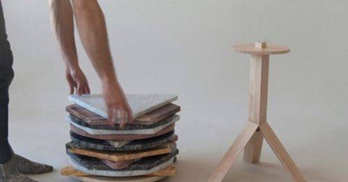 習慣了溫暖綿軟的真皮沙發,你是否還記得公園深處石凳冰涼的觸感?這一方方散落在房間各個角落的矮小石凳不可謂不時尚,將廢棄的大理石板材切割成不同形狀,嵌以打磨得光滑的原木凳腳,簡單的造型因為天然大理石優美的紋理而變得奪目吸睛。