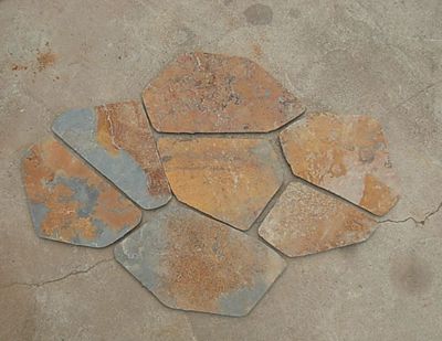 板巖地鋪石:用板巖加工成的地鋪石,同砂巖的裝飾風格一樣,古樸自然,但是花色選擇較少,主要是黑色、棕色、銹色和綠色為主。板巖地鋪主要用在公園、廣場、人行道、庭院、等場所。