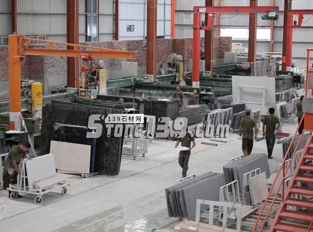 對于業界盛傳的鵬基式產能和產值,帶著疑慮深入了他們的生產車間,擺放有序的半成品、認真作業的工人和此起彼伏的器械聲都是有力的說明。生產車間內,各區域由專業部門分管,每個工作臺都出人意料的整潔干凈,這要歸功于鵬基專屬定制的除塵系統,在節能環保的同時,也緩解了車間工人的健康壓力;而不同的貨架臺車,則是根據石材特性及加工工藝設計而成,這在很大程度上保護了石材產品,從而降低產品的損壞度。