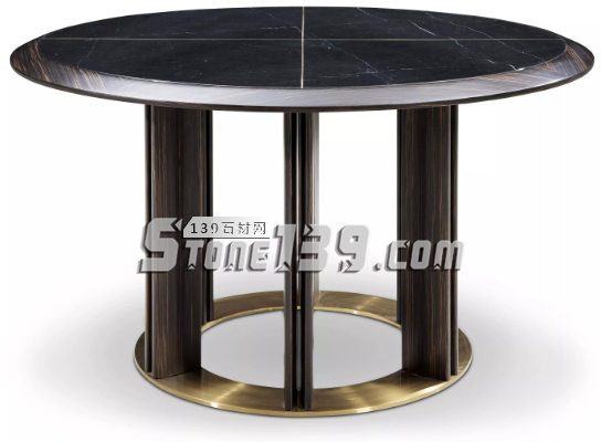 這款餐臺寓意為圓融、團圓之意,上下兩個圓形,上實下虛,形成鮮明對比,大理石層面嵌入到黑檀木臺面里,邊緣斜切,打磨圓潤,消減厚重之感,桌腳富有氣勢,腿中間處稍留鏤空,使得穩重之余不顯笨重,底盤采用鏤空銅件,輕奢優雅,提亮產品色調。