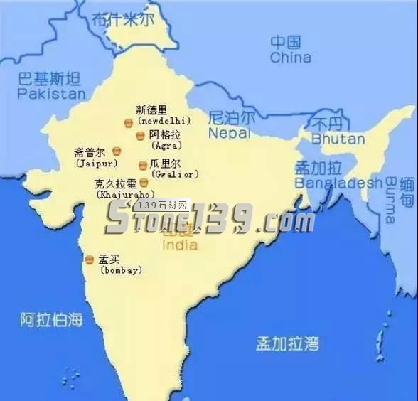 作為四大文明古國之一的印度擁有悠久的歷史文化,印度人對于石頭的運用可以追溯到公元前3200年前,經過時間的洗禮,印度石材從簡單的建筑材料轉變為擁有自己性格的文化符號。許多石質建筑作為國家的文化遺產至今聳立在人們的眼前。用本地生產的石頭搭建而成的寺廟、城堡和宮殿雕刻出了絢爛的古印度文明。美麗的泰姬陵在阿格拉炫耀著印度大理石的榮耀。卡殿,象島洞穴,上殿,古老的佛教古跡也都是印度石材源起的見證。