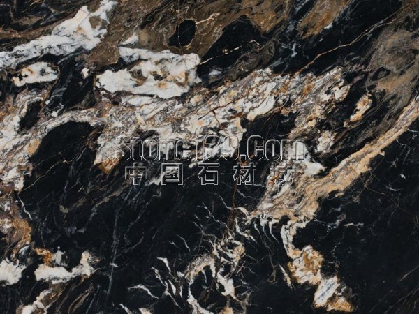 星河傳說,底色黑,金黃色、白色紋理的穿插使整個板面的紋路變得復雜,一片片的金黃色如同一顆顆小星星聚集在一起,閃閃發光;星河傳說,正如廣袤的銀河,包羅萬象,神秘的黑洞,耐人尋味。無論是二維的視覺沖擊,還是三維的空間感受,都傳遞著裝飾世界里不朽傳說。