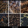 黑金花還可以按照版面效果分為大花、中花、小花等,按照花紋效果還可以分為兩種:一種細(xì)紋金黃色,一種帶狀灰白,其版面效果美輪美奐,各有千秋。