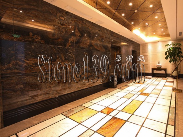 路透社Babylon-Fantasy石材,天然石英石,黑色底黃銹色的紋路