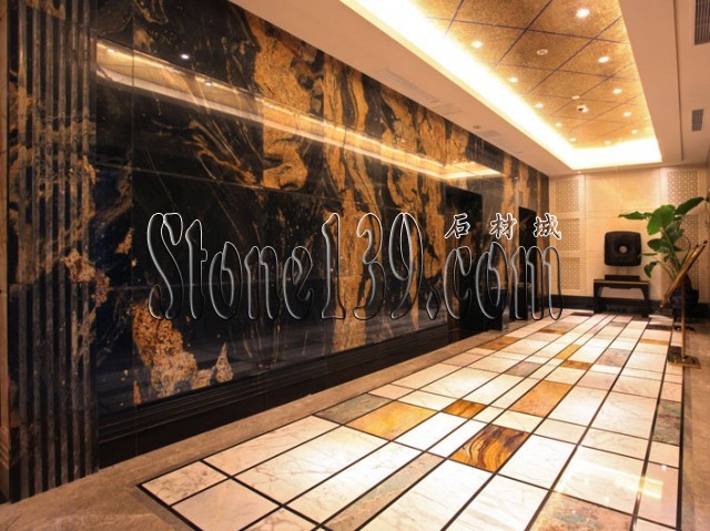 路透社Babylon-Fantasy石材,天然石英石,黑色底黃銹色的紋路