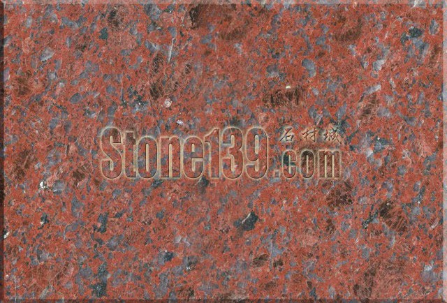 卡里紅花崗巖,紅色花崗巖石材,天然石材產品,紅色的底色有亮藍色的點綴,相似的品種有南非紅,印度紅,楓葉紅