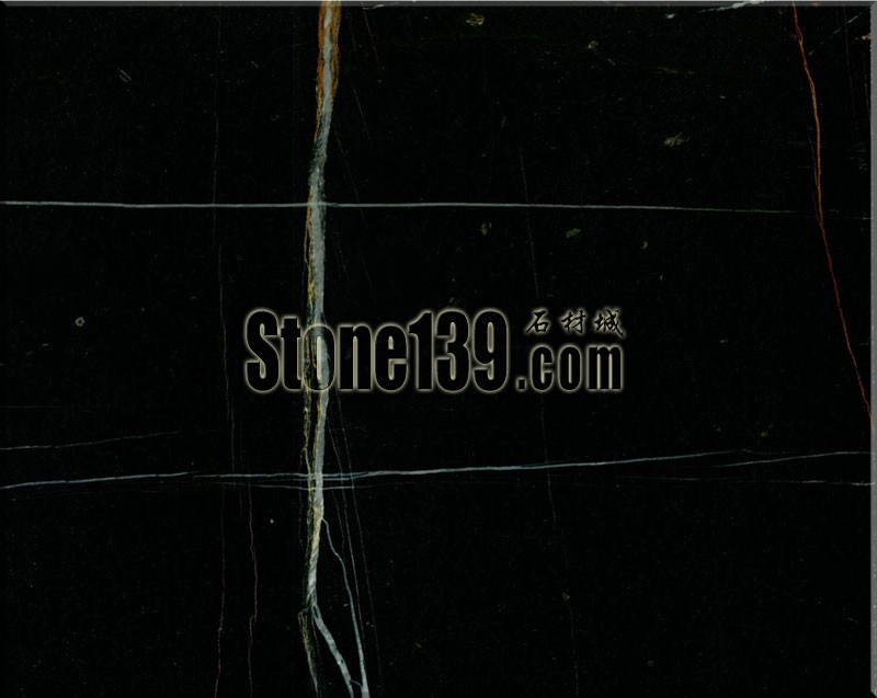 勞倫黑金大理石,黑色底色有著少量的纖線條紋路,粗細不均勻,有白色的和銹紅色的線條