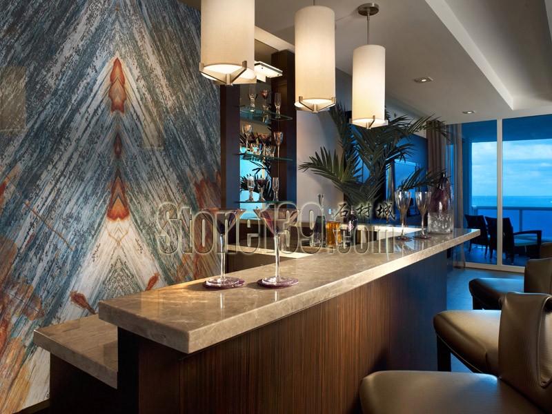 藍貝石英巖背景墻裝飾,天然的藍色石材裝飾背景墻 室內大理石裝飾