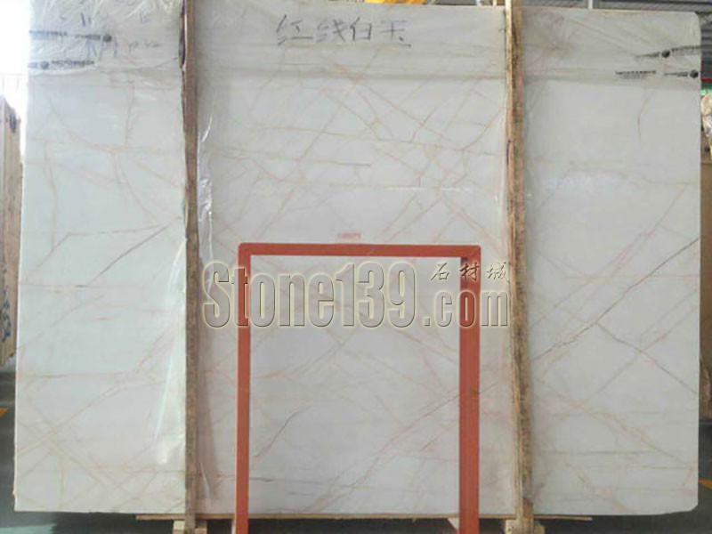 紅線白玉石材是天然大理石產品,白色底色,紅線紋