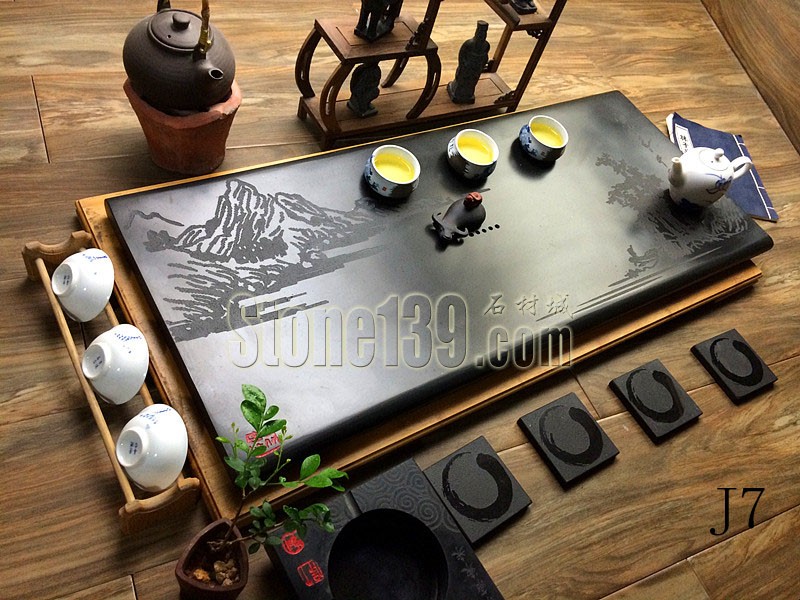 石材茶盤 黑色石材茶盤 圖片由石錦記提供