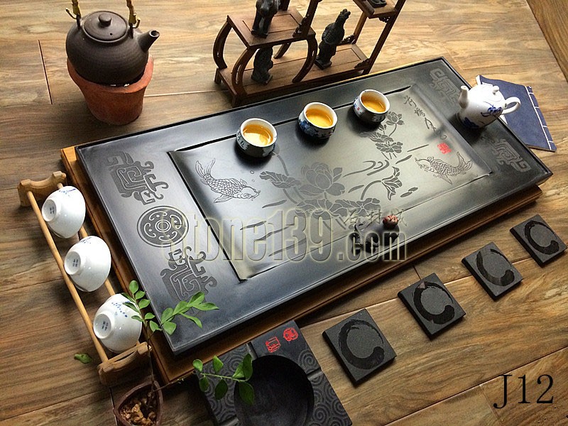 石材茶盤 黑色石材茶盤 圖片由石錦記提供