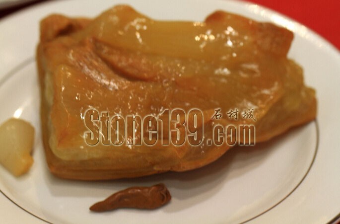 這么多的石材大餐是第一次見。作品中有我們經常食用的豬蹄、大骨頭、大蒜、包子、餃子、苦瓜、鴨爪、米飯、餅干、月餅、花生、雞翅、條子肉等,應有盡有色澤誘人,完全是一桌豐盛的石材滿漢全席。