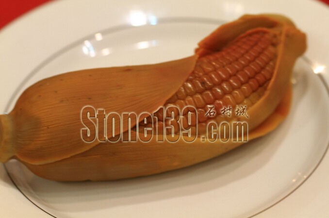 這么多的石材大餐是第一次見。作品中有我們經(jīng)常食用的豬蹄、大骨頭、大蒜、包子、餃子、苦瓜、鴨爪、米飯、餅干、月餅、花生、雞翅、條子肉等,應(yīng)有盡有色澤誘人,完全是一桌豐盛的石材滿漢全席。