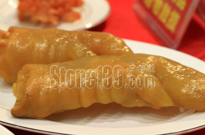 這么多的石材大餐是第一次見。作品中有我們經常食用的豬蹄、大骨頭、大蒜、包子、餃子、苦瓜、鴨爪、米飯、餅干、月餅、花生、雞翅、條子肉等,應有盡有色澤誘人,完全是一桌豐盛的石材滿漢全席。