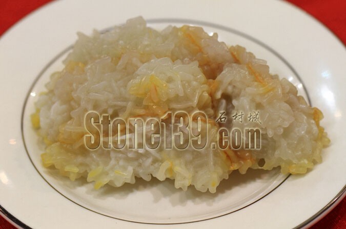 這么多的石材大餐是第一次見。作品中有我們經常食用的豬蹄、大骨頭、大蒜、包子、餃子、苦瓜、鴨爪、米飯、餅干、月餅、花生、雞翅、條子肉等,應有盡有色澤誘人,完全是一桌豐盛的石材滿漢全席。