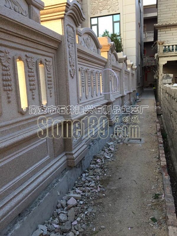 花崗巖別墅圍墻欄桿浮雕系列裝飾應用圖片 別墅院子圍墻 柱子 浮雕 花崗巖別墅裝飾產品系列圖