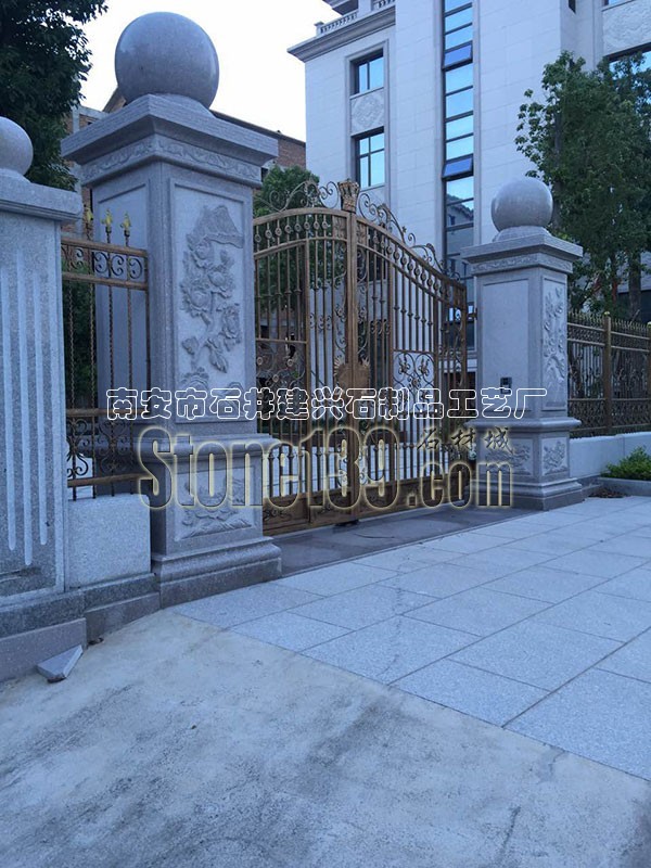 花崗巖別墅圍墻欄桿浮雕系列裝飾應用圖片 別墅院子圍墻 柱子 浮雕 花崗巖別墅裝飾產品系列圖